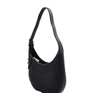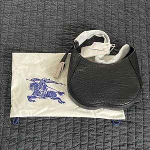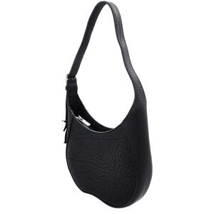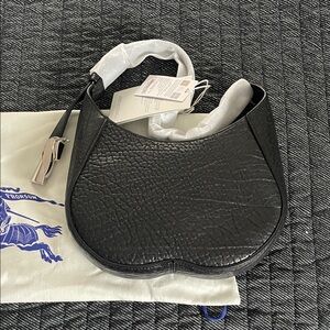 Chic black leather shoulder bag by Burberry. Textured finish with elegant design. Ideal for versatile styling.