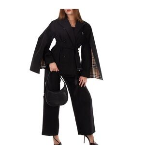Burberry Ladies Shoulder Bag. Color: Black. 9.1 x 1.8 x 7.5i. Burberry Small Leather Shoulder Bag. This elegant shoulder bag, crafted in Italy from premium grainy calf leather, exudes sophistication and timeless style. Featuring a structured B-shaped base, the design is both modern and functional. Its name is inspired by the brushed metal knight charm, a nod to the brand's heritage. Perfectly balancing practicality and luxury, this bag is a standout accessory for any occasion. Max. strap drop: 29cm/11.4in. Outer: 100% calf leather. Lining: 100% calf leather. Made in Italy.