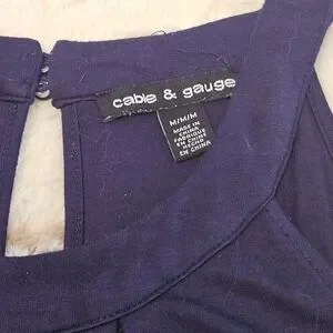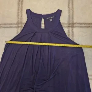 Elegant sleeveless top in a rich navy hue. Two buttons on the back. Made of a very stretchy fabric so it is not constricting. Pre-owned.