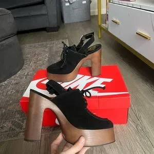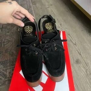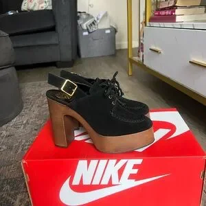 NWOT Vince Camuto Inerta Leather High Heel Platform Slingback Black Clog