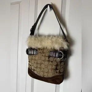 LOW START FOR SHOW! Vintage Coach Y2K with fur shoulder bag