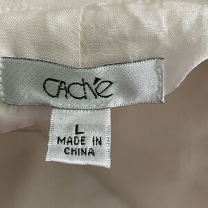 Chic white utility jacket by Cache. Features a stylish belt and button details. Ideal for versatile wear. It is a size large and in very good condition. It is fully lined and has a total of 4 pockets. The measurements are: sleeves 23 inches, bust 38 inches and the length is 25 inches from the top of the shoulders. This jacket looks amazing on!
