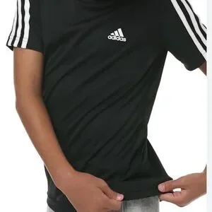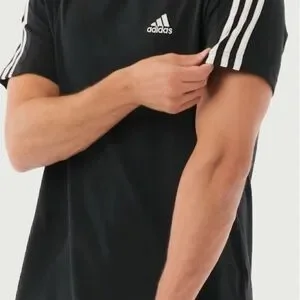 Experience the perfect blend of style and performance with the Adidas Black Short Sleeve Tee. Featuring a sleek design with the iconic Adidas logo and signature white stripes on the shoulders, this tee is crafted from high-quality athletic fabric for ultimate comfort. Ideal for both sports and casual wear, it offers a timeless look with a crew neckline and a deep black color.