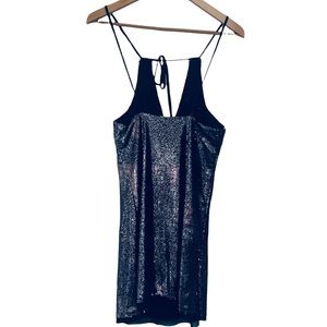 Free People Double Take Silver Sequin Rose Mini Slinky Slip Plunge Dress
