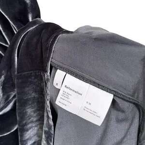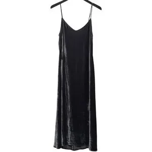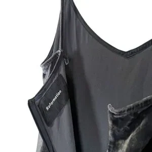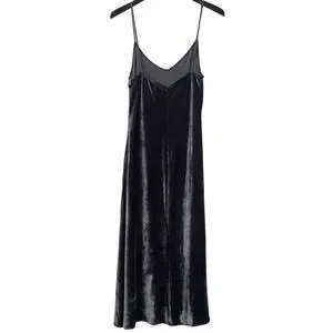 Reformation Size S Gaia Velvet V-Neck Midi Slip Dress in Caviar Slate Grey