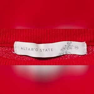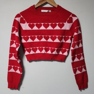 Altar'd State Vibrant Pink Red Heart Crop Long Sleeve Crew Sweater Top XS