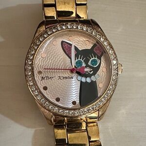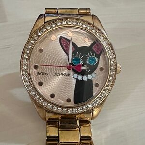 Betsey Johnson Black Cat Rose Gold Bling Watch