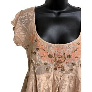 Kimchi Anthropologie Women Babydoll Top Blouse Medium M Tan Lace Bead Sccop New