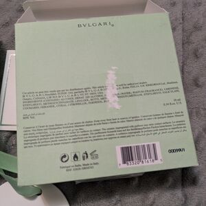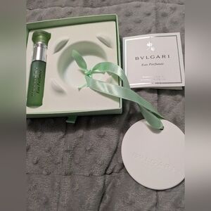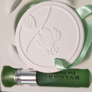 Bvlgari Eau Parfumée gift set with a green fragrance bottle and ceramic disc. Elegant and luxurious. 1 ml perfume. Unused. Damaged box.