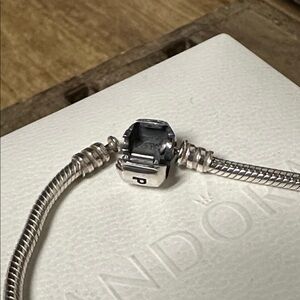 Pandora great shape sterling silver signature barrel clasp s925 charm bracelet