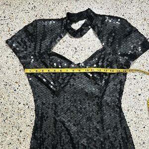Vintage Cache 90’s black sequin cocktail mini dress 8 sexy high neck