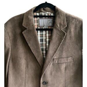 Old Navy Men's Corduroy Blazer Sport Coat Sz L Faded Dark Brown Plaid Lined NWOT
