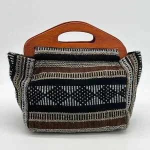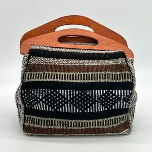 Pinzon Handbag Wooden Handles Made in Mexico Hand Woven Purse Tote New