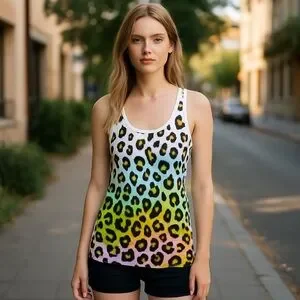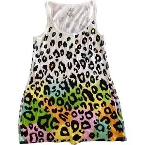 Vintage Delia*s Rainbow Leopard Print Ribbed Tank Top - Large | 90s/Early 00s