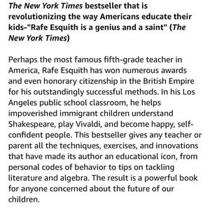 Perhaps the most famous fifth-grade teacher in America, Rafe Esquith has won numerous awards and even honorary citizenship in the British Empire for his outstandingly successful methods. In his Los Angeles public school classroom, he helps impoverished immigrant children understand Shakespeare, play Vivaldi, and become happy, self-confident people. This bestseller gives any teacher or parent all the techniques, exercises, and innovations that have made its author an educational icon, from personal codes of behavior to tips on tackling literature and algebra. The result is a powerful book for anyone concerned about the future of our children.