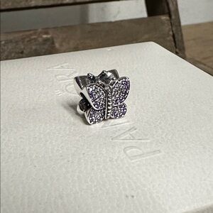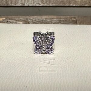 Authentic Pandora great shape sparkling butterfly purple lavender cz pave crystal sterling silver s925 ale stamped charm. Does not come with gift box.