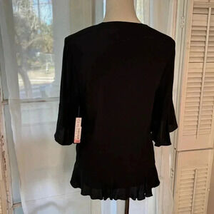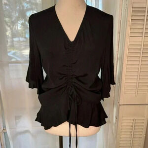 Black 3/4 top with bell sleeves and front scrunch ties.