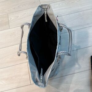 - Cord handles wrapped around the zippered main compartment allow comfortable carrying.