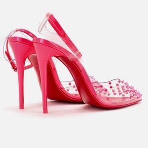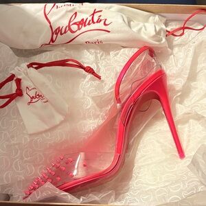 Bold red heels with signature spikes. Perfect for a standout look. Brand new in box with dust bags and extra heels
