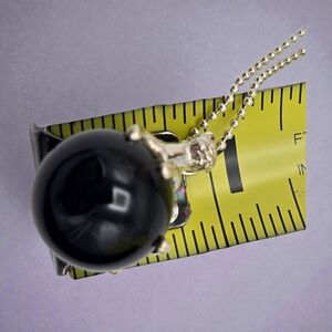 IBB Italy Designer Sterling Silver Cat on Black Orb Pendant 30" Chain