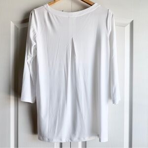 New without tags no flaws. Details: Liquid Knit: soft, flattering knit with a smooth feel and fluid drape. Features: bateau neckline, 3/4-length sleeves, back pleat detail. Laying flat: pit 20.5 inches; length 28.5 inches; shoulder 15.5 inches. Material: polyester blend.
