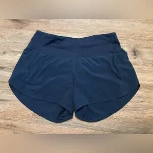 Great used condition Lululemon Speed Up Short Long 4” Updated Fit True Navy Blue Size 4. Clean liner.