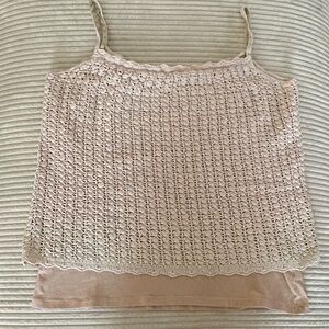 Women’s Beige Crochet Tank Top With Built-in Cami in Size XL
