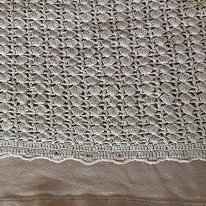 This precious classic crochet tank top with built in cami underneath is perfect for any occasion. The delicate beige color adds a touch of sophistication to your wardrobe. Pair it with your favorite jeans or a skirt for a chic look. The spaghetti straps are also crocheted. However the straps of the built in cami appears to have stretched already. The crocheted part though is intact and very pretty.