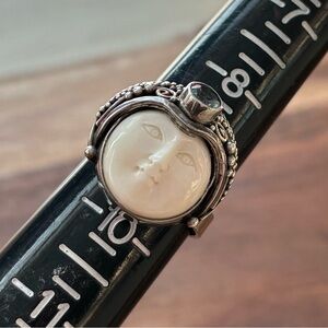 Sterling Silver and Carved White Bone Moon Face Ring Adjustable