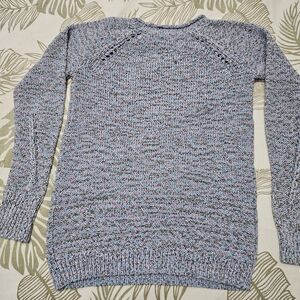 Talbots Sweater Sz XS Blue Pink Marled Cotton Blend Open Knit Crew Neck Pullover