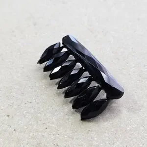 Antique Victorian French Jet Mourning Brooch Faceted Black Glass C-Clasp Pin
