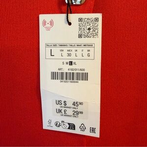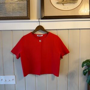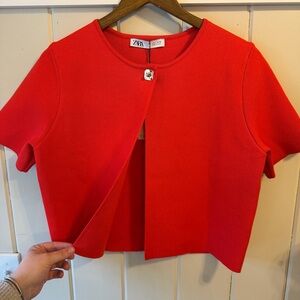 NWT Zara Bold Red Short Sleeve Top W/ Gold Button, Size Large