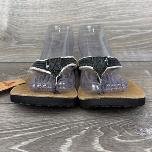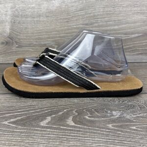 Sanuk Fraidy Cat Women’s Sz 10/EU 41 Black White Tan Slip On Flip Flop Sandals