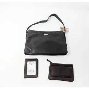 Measurements: Purse-Height: 6 inches, Width: 9 inches, Depth: 3 inches, Strap drop: 6 inches; Card Wallet-Height: 3 inches, Width: 5 inches; ID Holder-Height: 3-3/4 inches, Width: 2-3/4 inches
