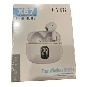 Brand new X87 True Wireless Stereo Earphones by CYXG, still factory sealed in original packaging. These are sleek, modern earbuds with a digital display charging case — perfect for everyday listening, calls, and gaming.