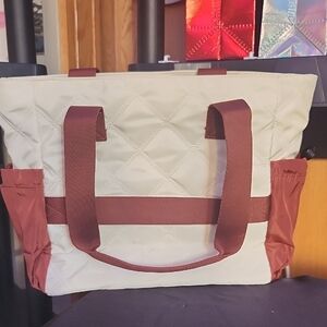 Elevate your style with this elegant two-tone tote bag set. Featuring a spacious interior and a matching pouch, it's perfect for daily essentials. The chic design combines cream and brown hues for a sophisticated look.