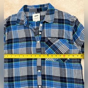 Aerie Flannel Button Up Plaid Shirt blue/green size Small