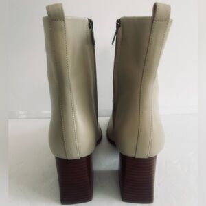 Marc Fisher Floria Cream LEATHER Ankle Bootie Stacked Block Heel Size 11 NEW