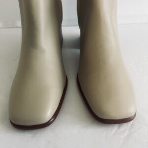 Step out in style with these chic cream ankle boots. Perfect for any occasion, they offer both comfort and elegance. Slight scuffs throughout low visibility.