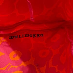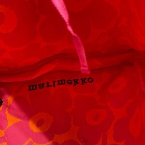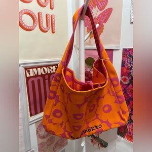 Stand out with this Marimekko tote. Features bold orange and pink floral pattern. Ideal for a stylish look.