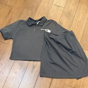 Polo shirt with Ultimate Edition on it and matching skirt.
