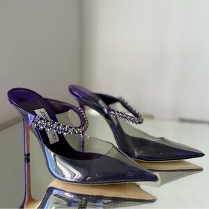 New Jimmy Choo Bing Crystal Clear Mule Pumps $1,150 37.5