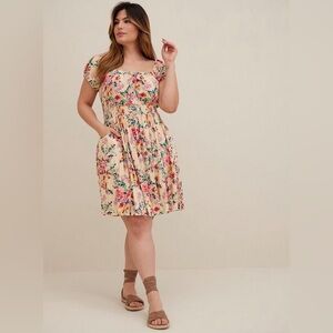 Torrid 2 Multi Floral Mini Lenny Smocked Waist Dress 2X 18/20