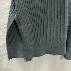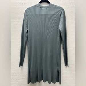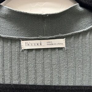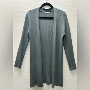 Stylish open front ribbed cardigan; Perfect for layering; foam green color; new without tags; tag says large but more like a small to medium; length 34 1/2”; 95% viscose 5% Nylon; ppet and smoke free home.
