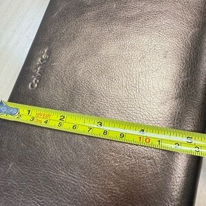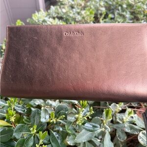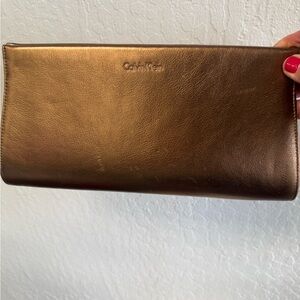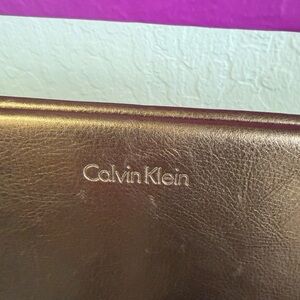 Chic metallic bronze clutch by Calvin Klein. Sleek and stylish design.