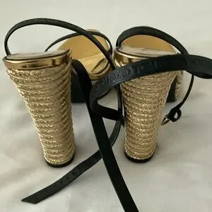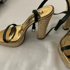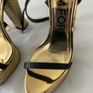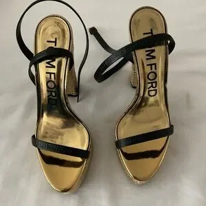 Tom Ford Gold and Black Strappy Heels size 38.5