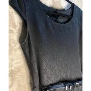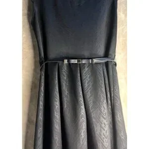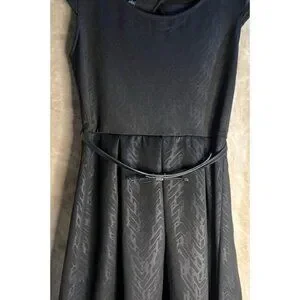 IZ BYER WOMENS VERSATILE BLACK PRINTED SCUBA KNIT SHORT SLEEVE DRESS BELT SIZE L