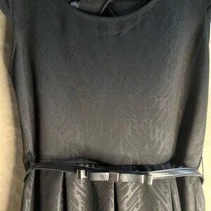 Elegant and stylish, this black printed scuba knit dress features short sleeves and comes with a matching belt. Perfect parties, casual outings, business meetings, for any occasion. It's designed to flatter and provide comfort all day long, with a flattering knee-length silhouette and belted waist. Fashionable and practical outfit choice.