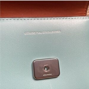 Coach Wallet. Has a light scratch in the front. It’s circled on the 7th picture.