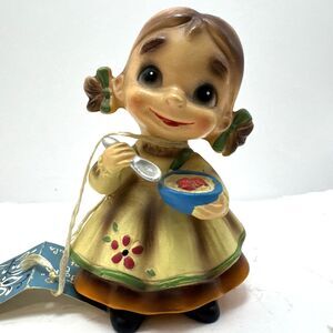 Josef Originals VTG Wee Folks Elf Girl Holding bowl of food Ceramic Figurine